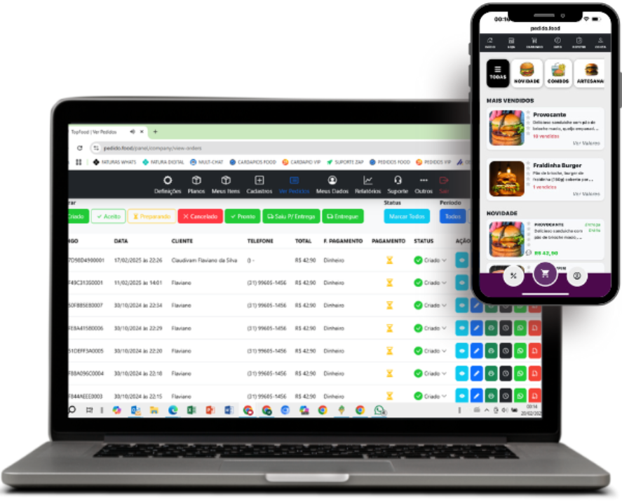 Receba seus pedidos da forma profissional e organizada, registrando todos os seus pedidos para não perder o controle do seu negócio